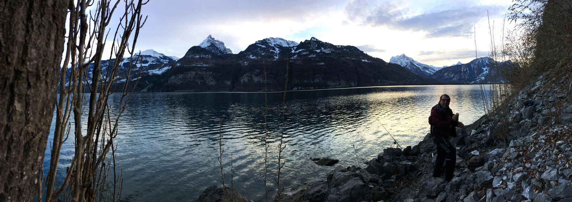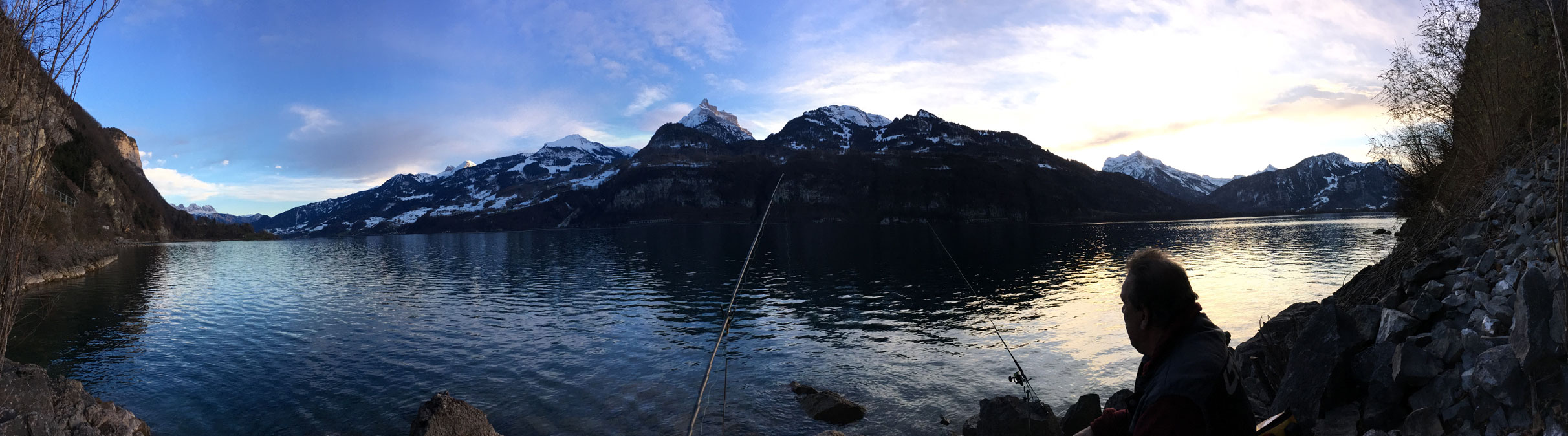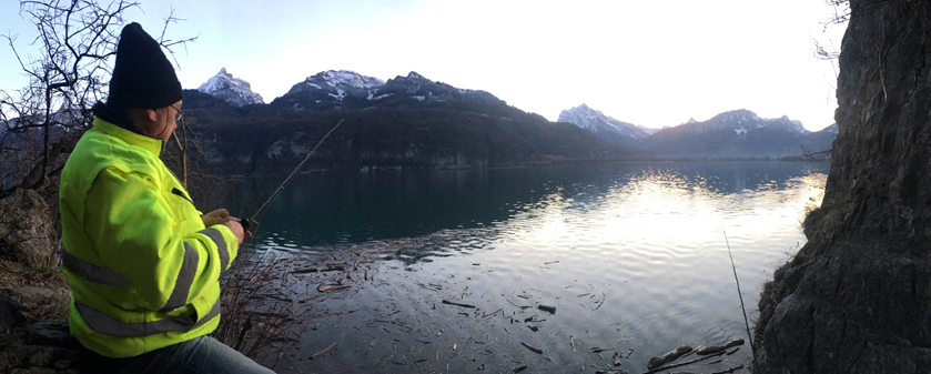 Nach dem schönen und erfolgreichen Saisonabschluss am 31.12.2017 am Tag darauf, dem 1.1.2018 kurzerhand ein Ausflug zum Walensee (Betlis), wo Siggi und Christian mal das Freiangelrecht ausprobieren und zumindest das schöne Wetter und das prächtige Panorama genießen.